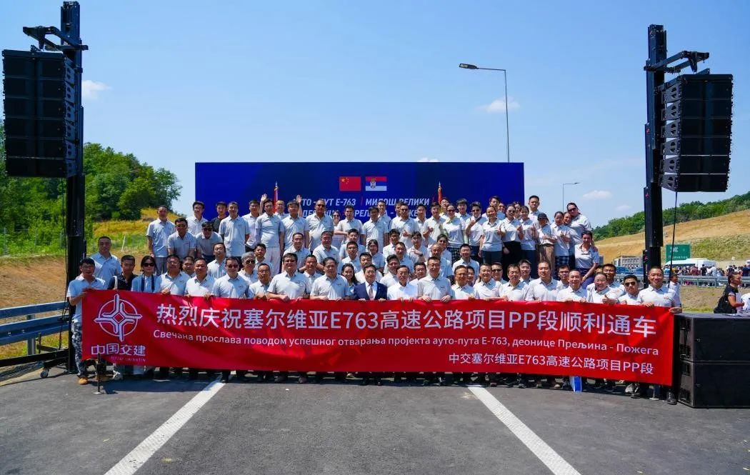 承建的塞尔维亚E763高速公路普瑞利纳-波热加段项目通车仪式在塞莫拉瓦州卢查尼市举行。塞尔维亚总统武契奇,建设、交通和基础设施部部长索夫罗尼耶维奇,公共投资部部长格里希奇,中国驻塞尔维亚大使李明出席仪式。