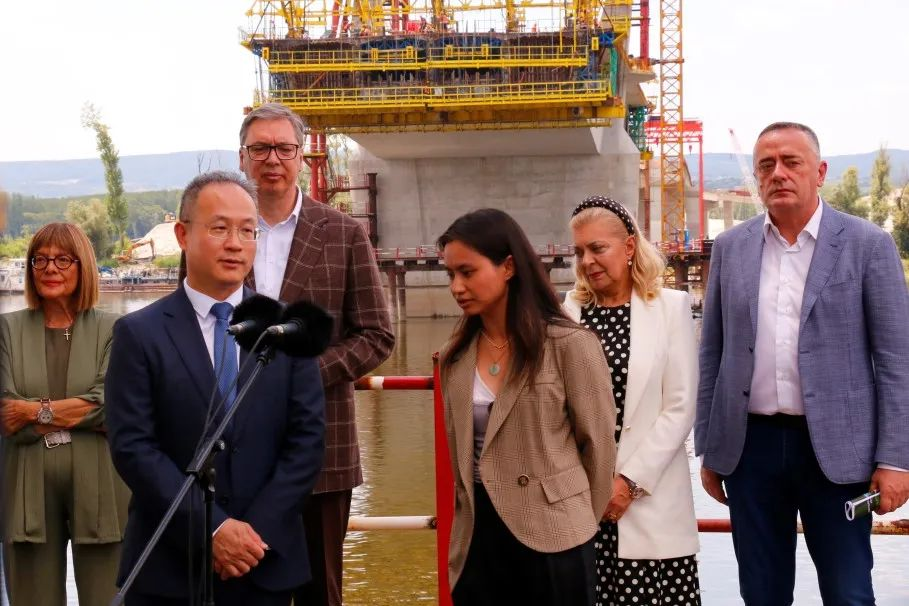 近日,塞尔维亚总统亚历山大·武契奇到中国路桥承建的诺维萨德至鲁马快速路项目跨多瑙河大桥施工现场视察。中国驻塞尔维亚大使李明,塞尔维亚建设、交通和基础设施部部长索弗罗尼耶维奇,伏伊伏丁那省省长戈伊科维奇,诺维萨德市市长米钦等参加视察。