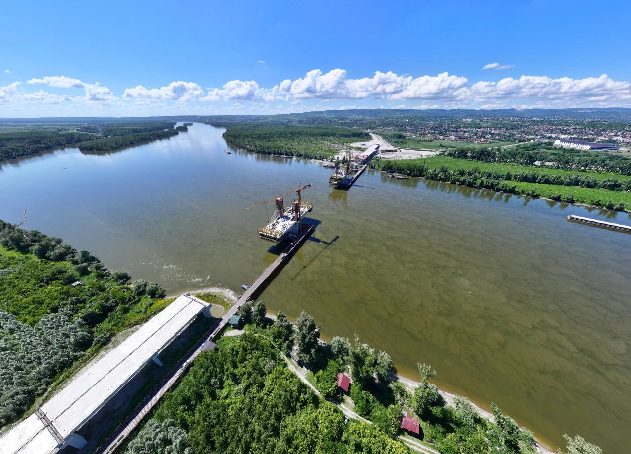 跨多瑙河大桥是该项目控制性关键工程之一,总长1663米,采用预应力混凝土双塔三跨式矮塔斜拉桥结构,设计时速80公里。目前大桥正在进行主桥挂篮施工,整体进展顺利。该大桥作为中资企业在塞尔维亚承建的首座跨多瑙河斜拉桥,建成后将进一步提升城市间互联互通水平,增强塞尔维亚第二大城市诺维萨德的区域竞争力,完善区域交通网络。
