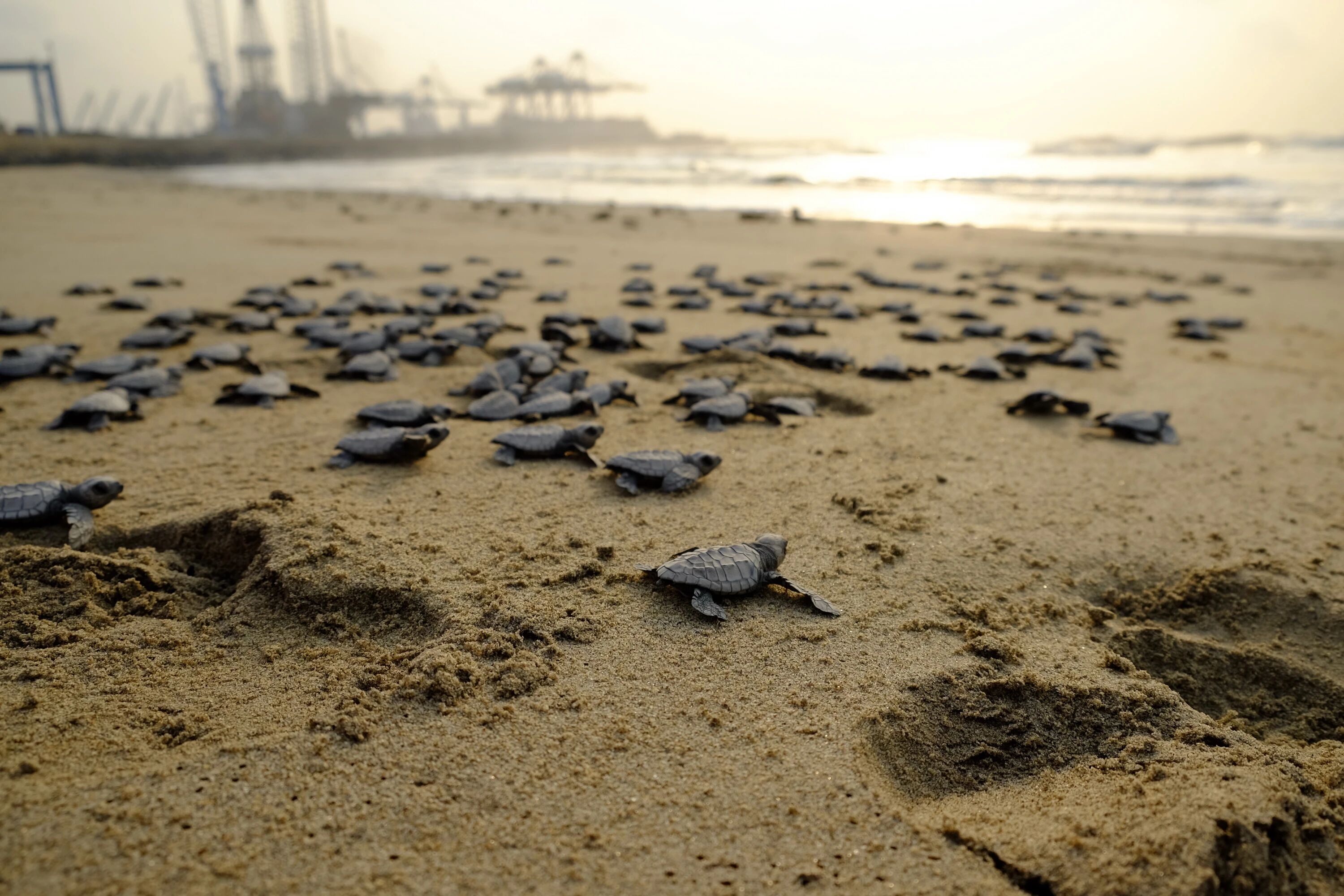 加纳特码新集装箱码头项目位于非洲几内亚湾,施工区域是海龟的重要产卵地,全球5大类海龟在此出生。项目团队在海滩上设置“中国产房”——海龟孕育中心,组建海龟保护巡逻队,投入专业设备,联合加纳野生动物保护协会等,共同编制《海龟和海洋哺乳动物保护计划》。截至项目完工,累计收集海龟蛋21684枚,成功孵化放生海龟17087只,生态成效与社会效益同步凸显。