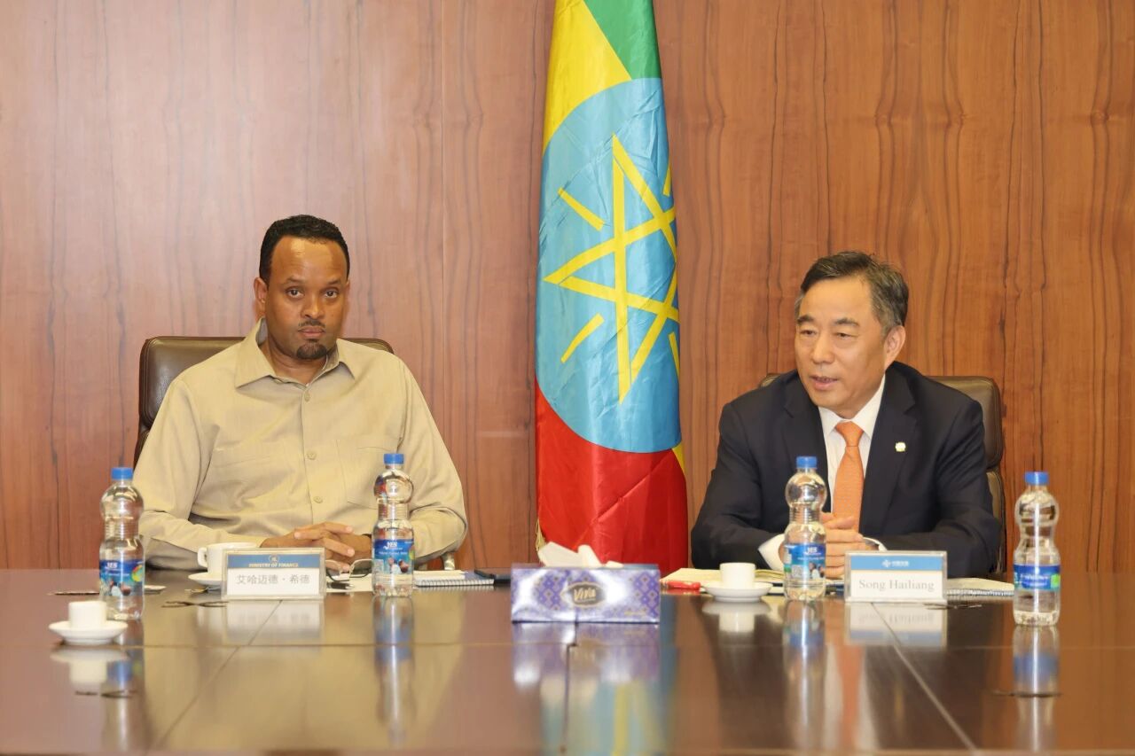 董事长宋海良在埃塞亚的斯亚贝巴财政大楼拜会埃塞俄比亚财政部部长艾哈迈德·希德,双方围绕落实两国领导人重要共识,深化基础设施建设领域务实合作、推动重大战略性项目落地、拓展多元化合作模式等议题进行深入交流,共同助力中埃塞全天候战略伙伴关系走深走实。
