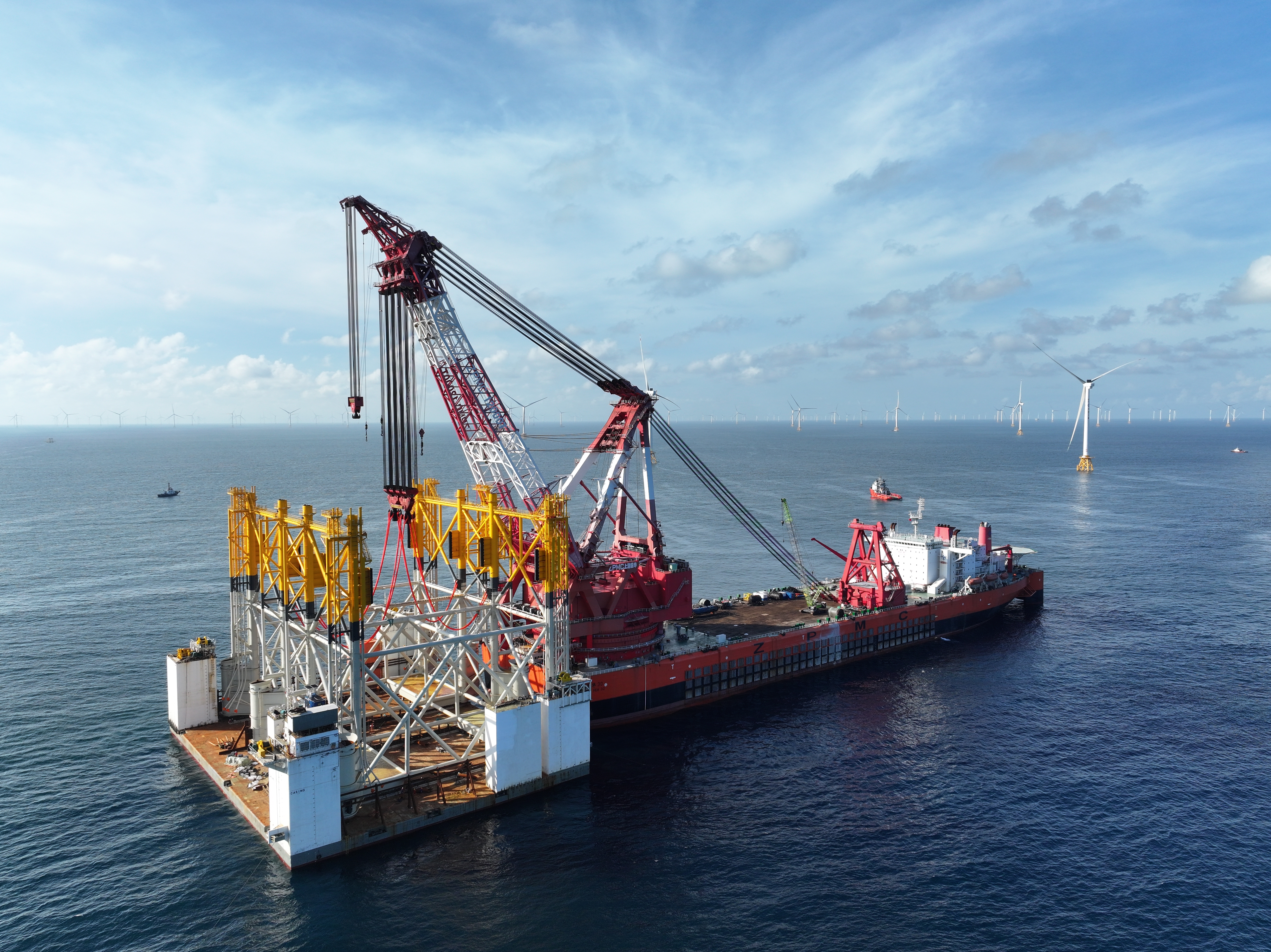 振华重工自主研发建造的世界最大单臂12000吨自航全回转起重船“振华30”轮完成国内首个万吨级海上钢结构的“浮+吊”安装作业