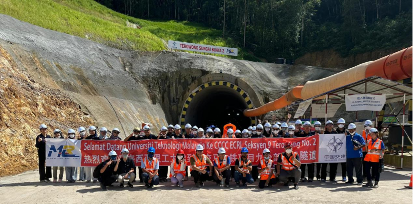马东铁项目九分部邀请马来西亚理工大学土木工程系师生参观项目施工现场,寻求校企合作共赢、共谋发展的良好局面。马来西亚铁道有限公司(MRL)总经理 阿兹兰(Azlan) 出席活动。