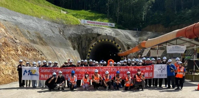 马东铁项目九分部邀请马来西亚理工大学土木工程系38名师生参观项目施工现场。