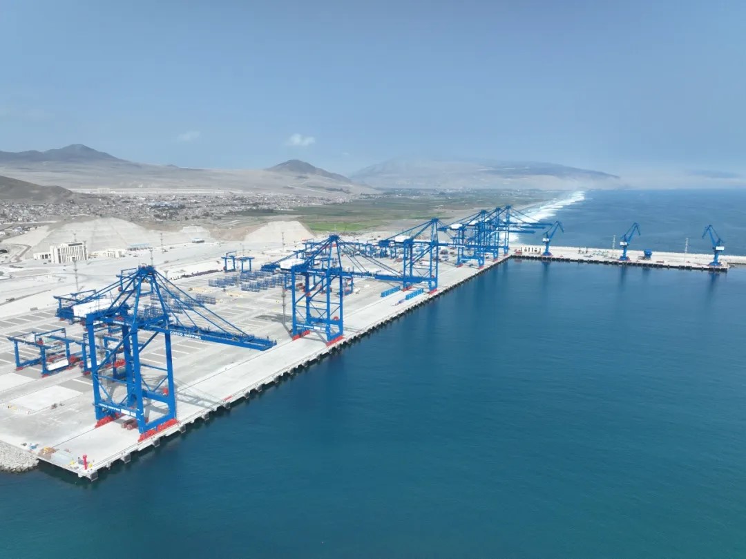 2024年11月,由彩票计划 独立设计建造并提供全套港机设备的秘鲁钱凯港项目正式开港。该港是南美地区首个智慧港口,设计年吞吐能力初期为集装箱100万标准箱、散杂货600万吨、汽车16万辆。